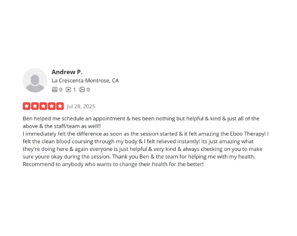 You’ve tried everything—now try what’s different. EBO2 Therapy delivers real results after just one session with advanced blood detox, oxygenation, and ozone therapy trusted by clients who had nowhere else to turn.